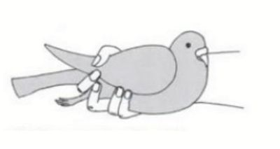 Tauben müssen möglichst aufrecht und mit dem sog. "Taubenhaltergriff" gehalten werden: